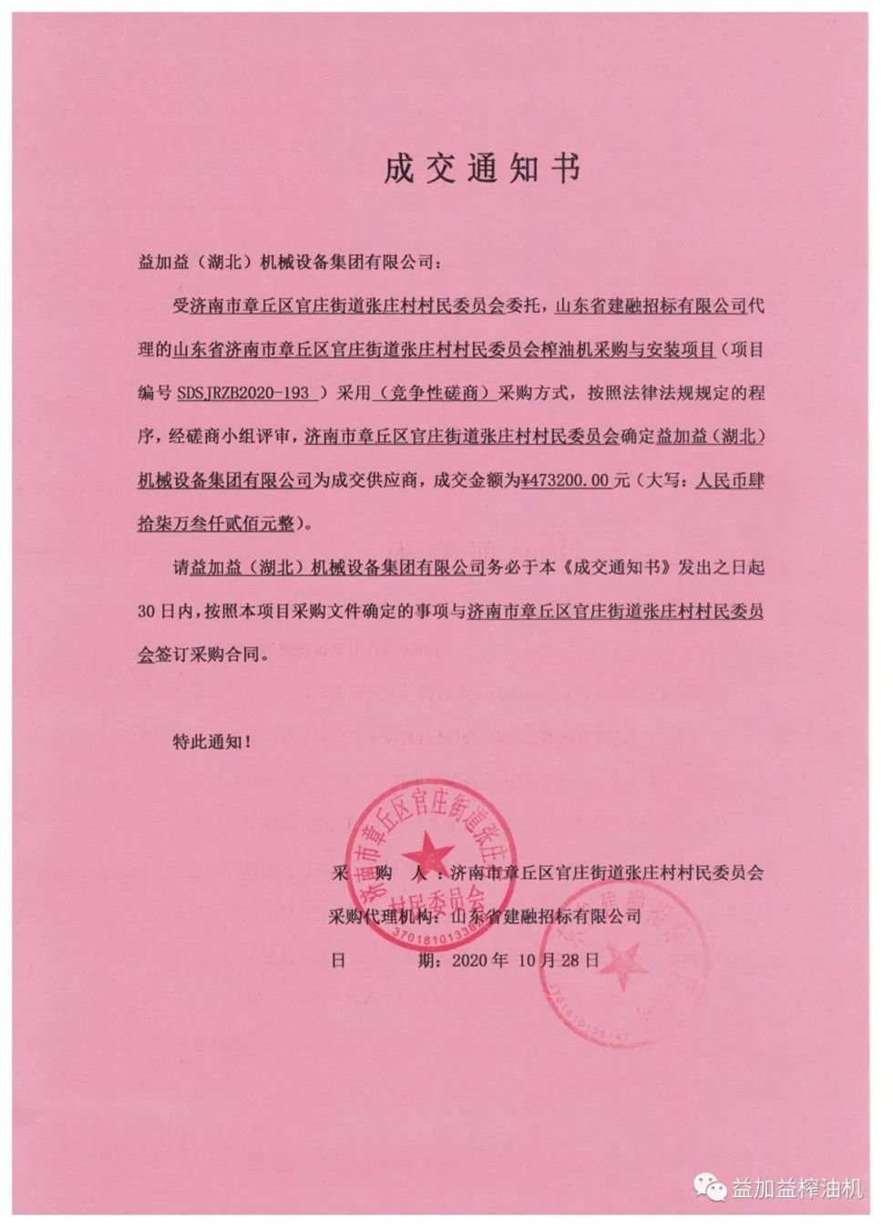 金秋益加益集團(tuán)又中標(biāo)政府采購榨油機(jī)項(xiàng)目